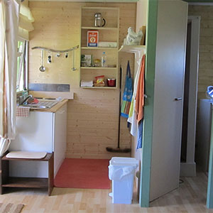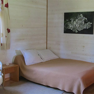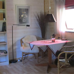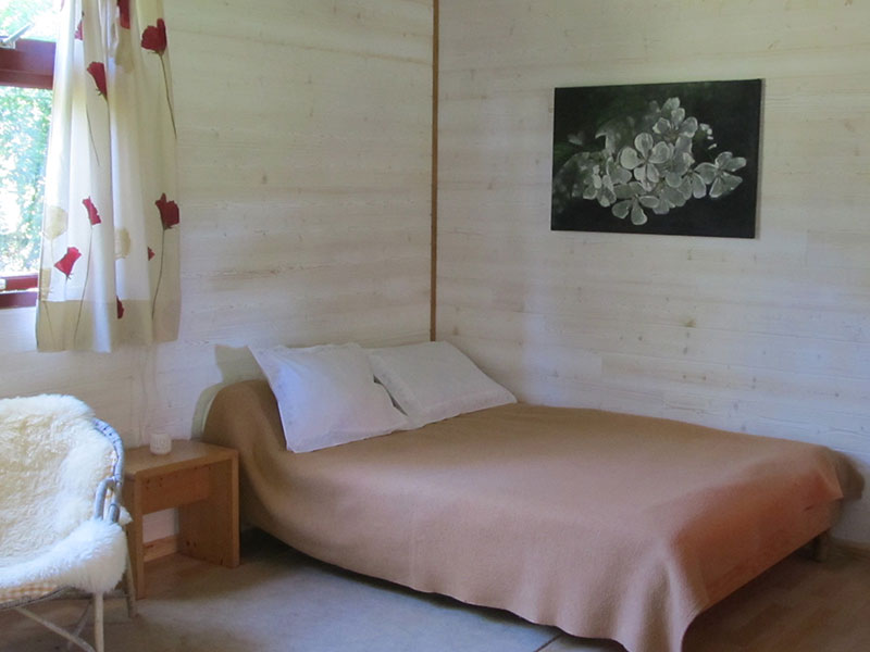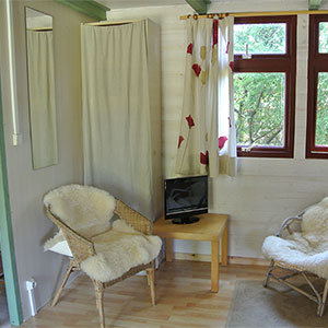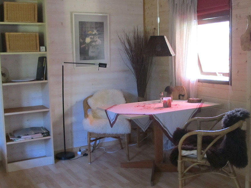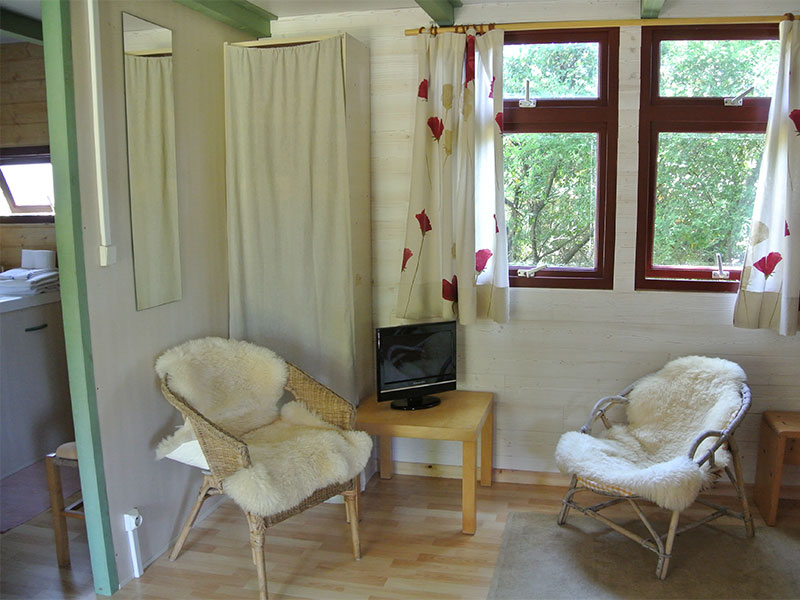 Das Chalet besteht aus einem großen Wohnraum mit Doppelbett, gemütlicher Sitzecke, Eßecke. Eine Küchenzeile ist ebenfalls in dem Raum enthalten.